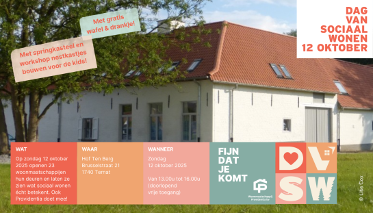 Providentia neemt op 12 oktober 2025 deel aan de Dag van Sociaal Wonen!